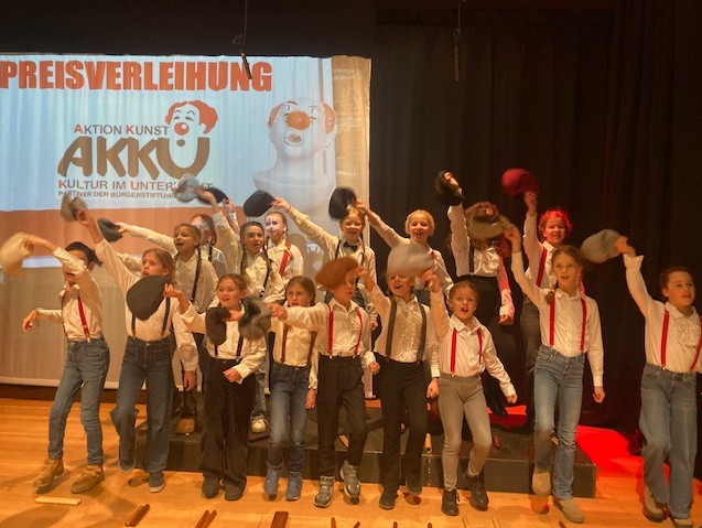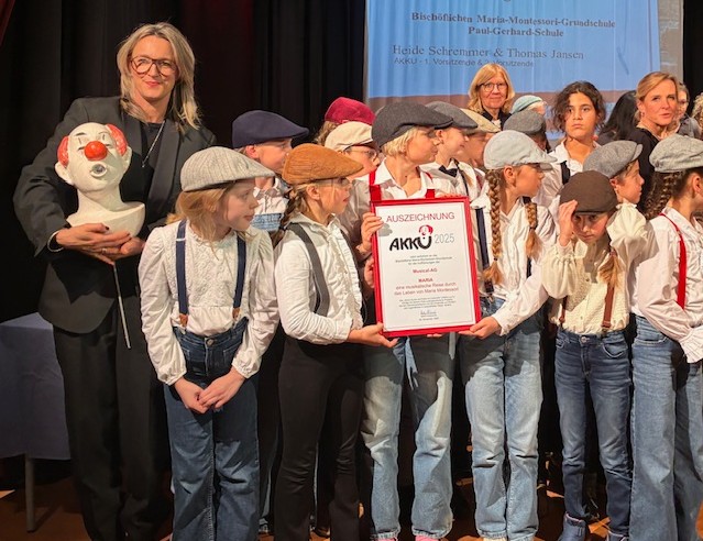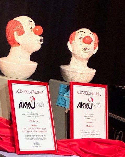 Eindrücke von der Preisverleihung in der Krefelder Musikschule am 26.11.2025 – Wir sind glücklich und stolz auf unseren AKKU Clown, der ab sofort einen Ehrenplatz im Eingang unserer Schule einnimmt.
